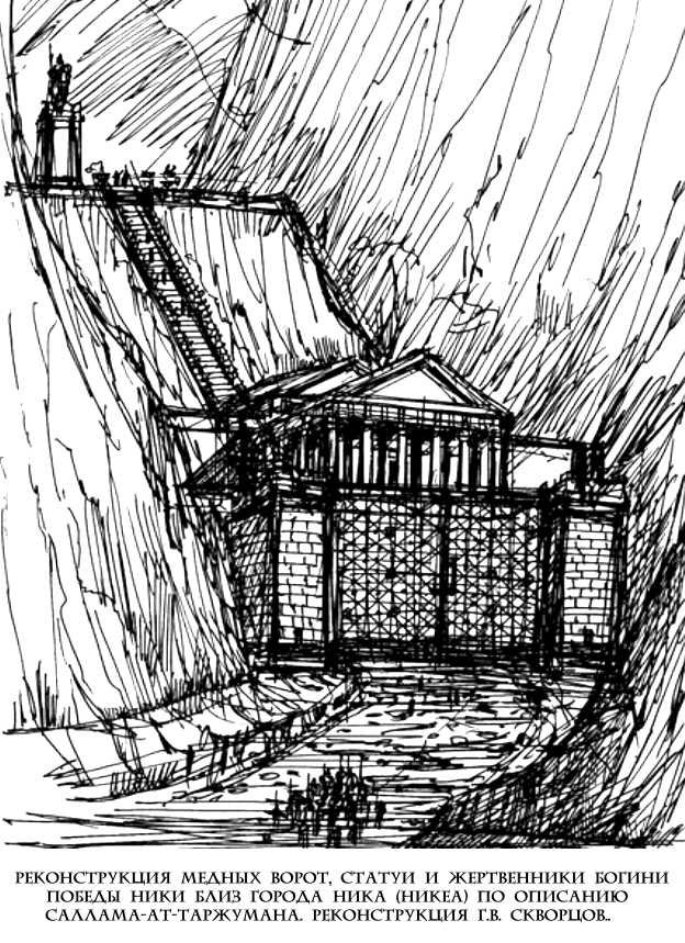 - Стена и ворота это один объект, а не два разных. Фирдоуси, Низами и Навои писали, что Александр построил стену и Медные ворота против гогов и магогов по настоянию местных жителей, которых эти гоги и магоги обижали. В 18 суре Корана упоминается строительство этого объекта, причем упоминается какая-то плата, то ли "мы тебе заплатим за труды", то ли "ты нам заплатишь за наши потери". Я уже писал, что требуется новое более тщательное прочтение древнего текста арабистами. Я считаю, что этот объект был построен в горах Тонель (Путорана), что успешно перекрыть можно было лишь выход из пещерного комплекса. Эти ворота видел и по заданию калифа ал-Васика описал арабский путешественник Саллам ат-Тарджуман. Томский архитектор и краевед Геннадий Скворцов реконструировал изображение Медных ворот. Я составил проект на поиски объекта, подавал две заявки на финансирование, ничего не получил, пытался организовать турпоход в те края, но пока не осилил.
