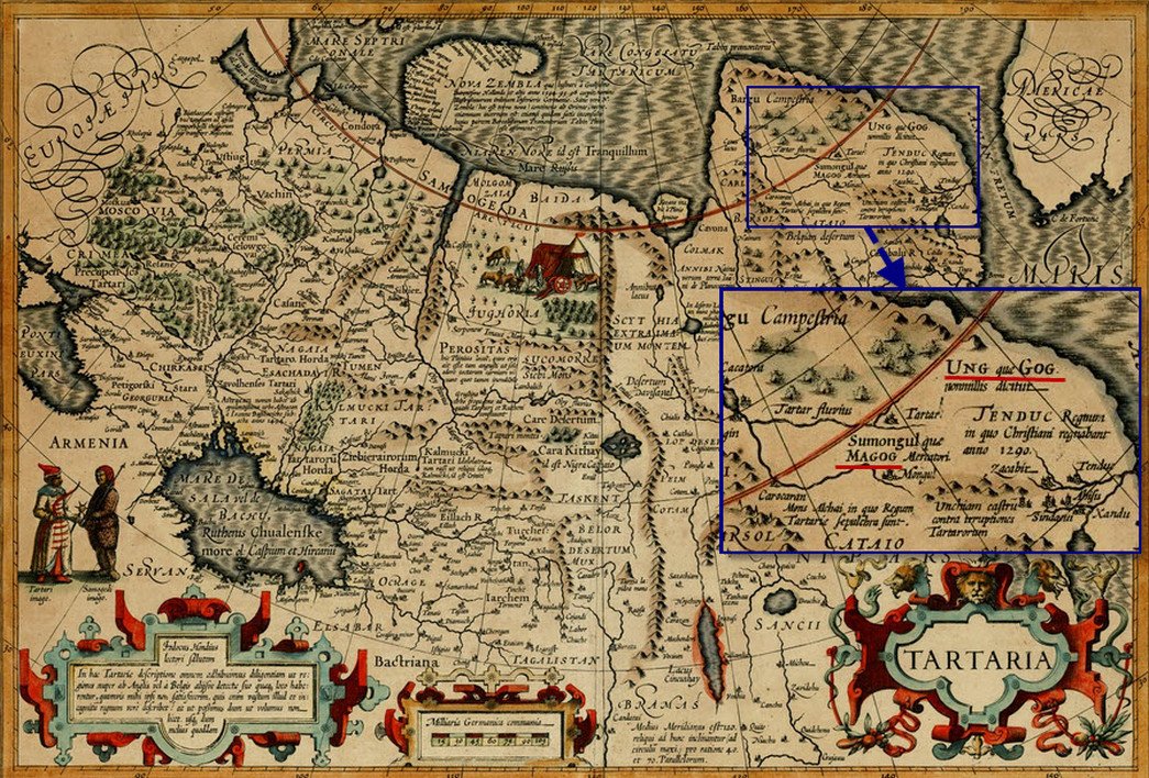 Говоря о Татарах как о народе, вырвавшемся из-за "монолита недвижных камней", Матфей Парижский недвусмысленно отождествляет Татар с Гогом и Магогом, которые прорвались сквозь "стену Александра", т.е. Александра Македонского.