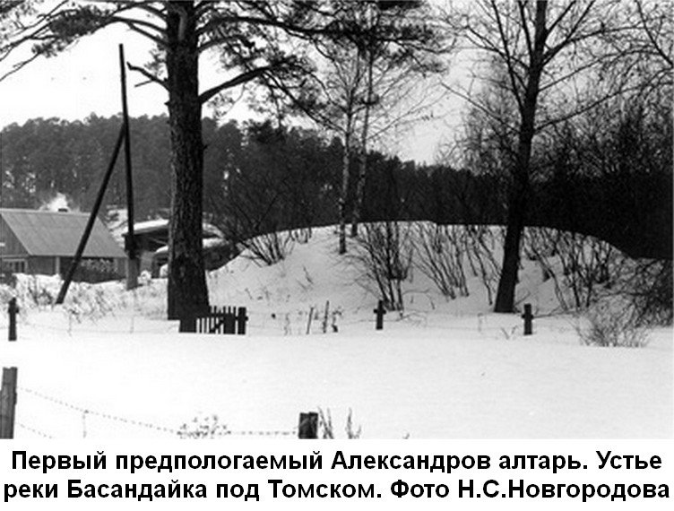 Известно также, что в конце восточного похода по приказу Александра было построено 12 алтарей для принесения жертвоприношений греческим богам. Николай Новгородов считает, что 12 абсолютно не исследованных курганов находятся на пути от деревни Аникино Томской области вдоль реки Басандайки. В пользу его гипотезы говорят также некоторые предметы, найденные в Сибири, возможно, принадлежали армии Александра. Например, статуэтка Геракла, найденная в устье Катуни (Бийский музей), блюдо со сценой вознесения Александра Македонского, найденное близ устья Оби (Эрмитаж), позолоченные и посеребренные клинки из Филипповских курганов (Оренбургский музей).