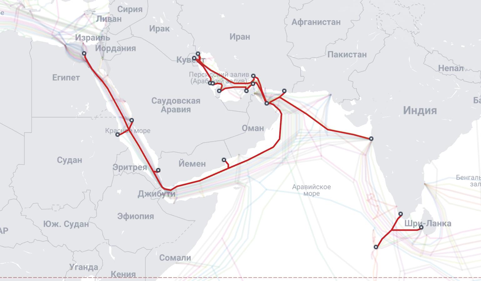 Tata TGN-Gulf: Кольцевая сеть, обеспечивающая связность между Оманом, ОАЭ, Катаром, Бахрейном и Саудовской Аравией.