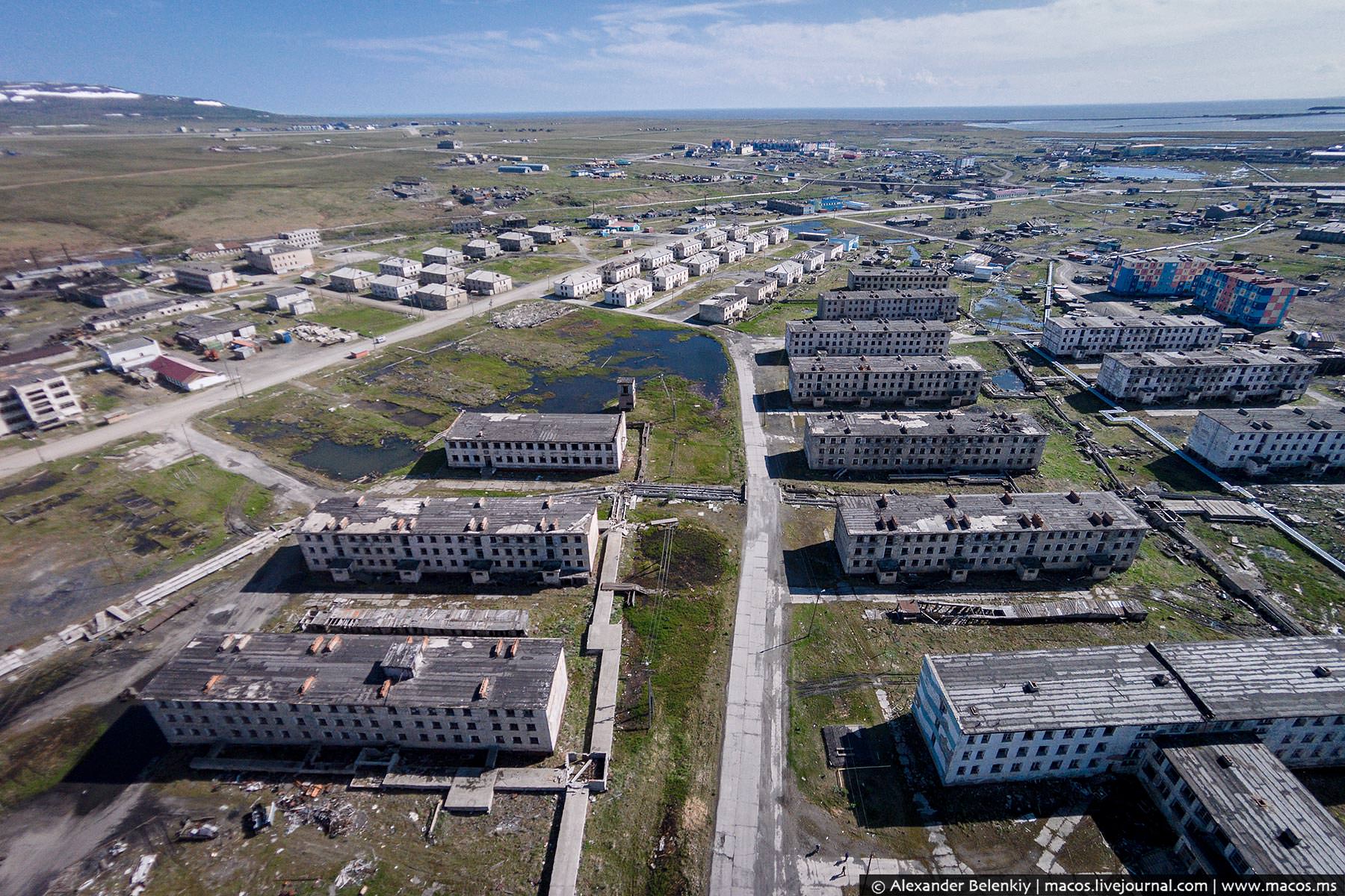 25 Получилось как-то так, что «гражданская» часть «Угольков» осталась жить, а всех военных вывели и половина города теперь лежит в руинах. Забегая вперёд, самое крутое заброшенное место возле Анадыря это посёлок Гудым: наберитесь терпения, про него будет отдельный репортаж.