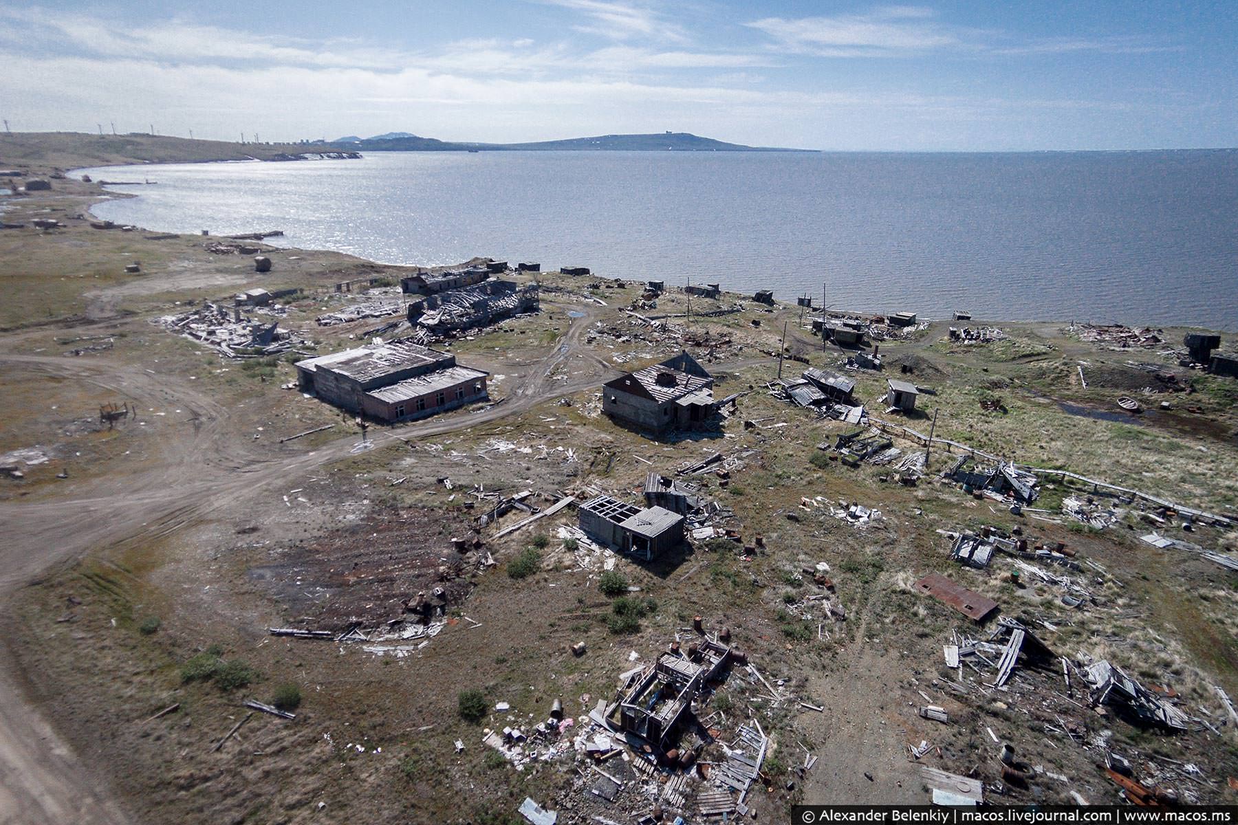 10 Посёлок на берегу моря. У кого-то курорт, а здесь разруха. Всё в таком состоняии не только из-за суровых зим, когда температура доходит до минус шестидесяти. Как раз во многом поскольку местные жители растаскивают всё, что плохо лежит.