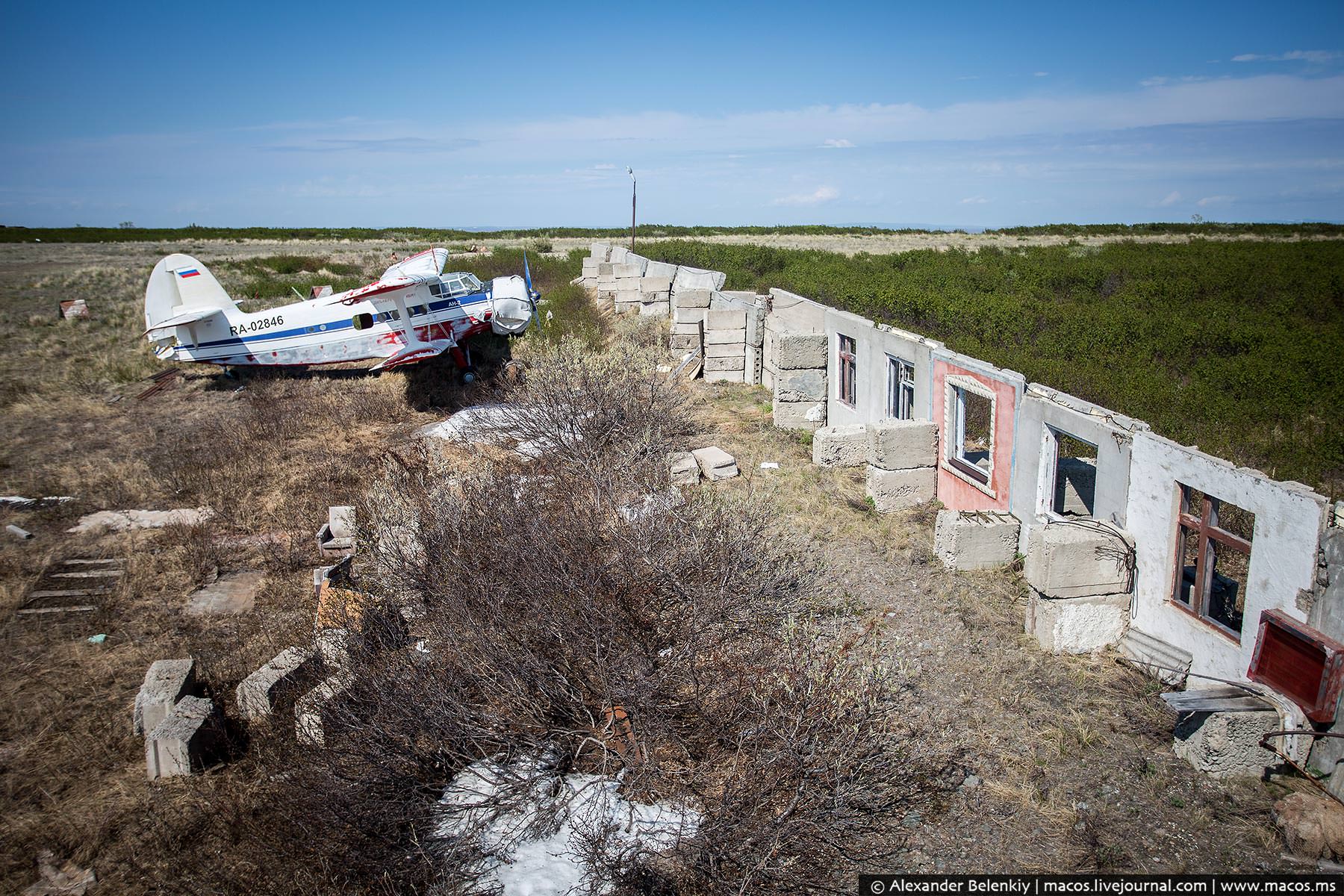 16 И недействующий аэропорт Анадыря. До того, как воздушная гавань стала располагаться в низине, возле Угольных Копей, гражданский аэродром был именно здесь: там хозяйствовали военные. От взлётной полосы ничего не осталось, она заросла. Здание аэропорта сегодня представлят из себя одну-единственную стенку.