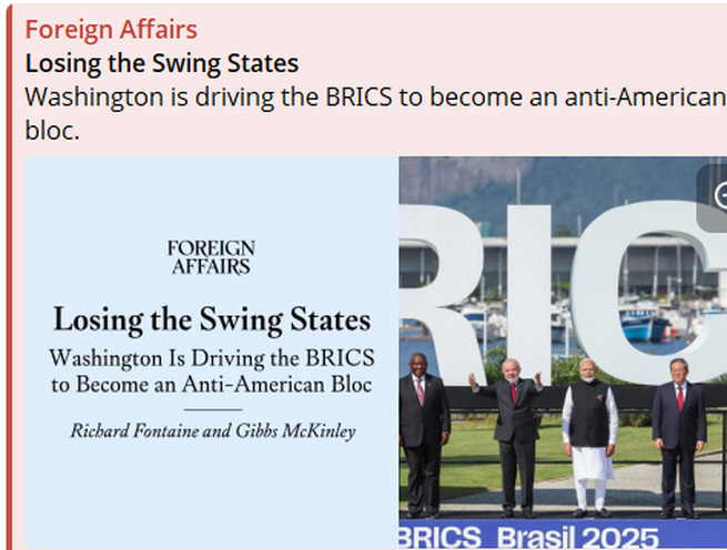 ЕЛЕНА ПАНИНАВ интересах США, чтобы БРИКС раскололся на две фракции, утверждают на страницах влиятельного журнала экс-советник экстреми...