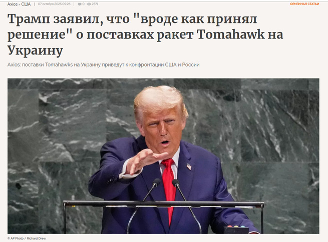 Про Трампа и «Томагавки» - не интересно. Ну почти. Не сомневался, что именно Трамп не удержится и перв...
