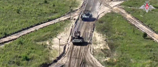 Министр обороны РФ Андрей Белоусов, главнокомандующий сухопутными войсками РФ Андрей Мордвичев, президент РФ Владимир Путин и...