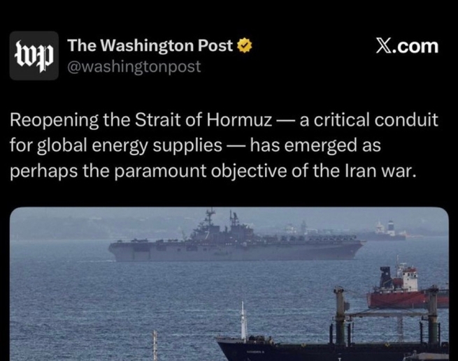 Америка начала войну, которая привела к закрытию Ормузского пролива, и теперь её цель — продолжить войну, чтобы открыть Ормузский пролив... ...