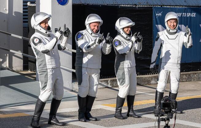 Астронавт NASA Майк Финк, космонавт Роскосмоса Олег Платонов, астронавт NASA Зена Кардман и астронавт JAXA Кимия Юи© Austin D...