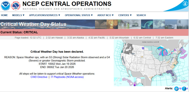 NOAA объявило до 9 утра 20 января (по московскому времени) статус CWD — критический погодный день.