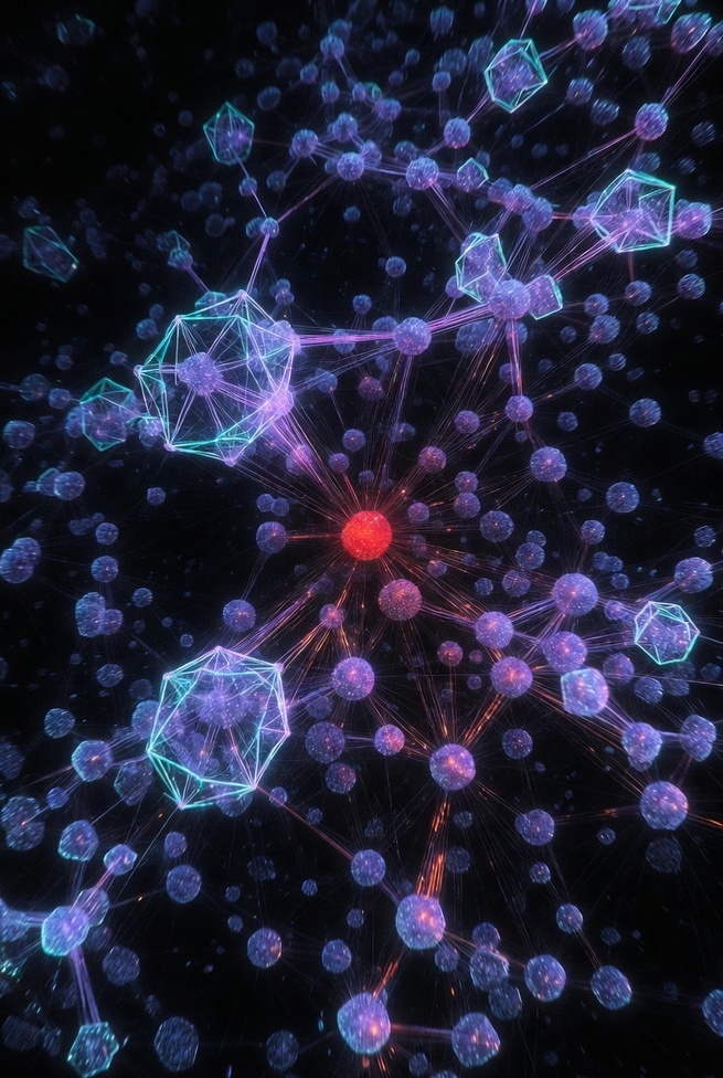 В модели **GraphiVerse-5** наша Вселенная — это растущий гиперграф с ветвлением (p = 5). Каждая вершина и связь — как кирпичи...