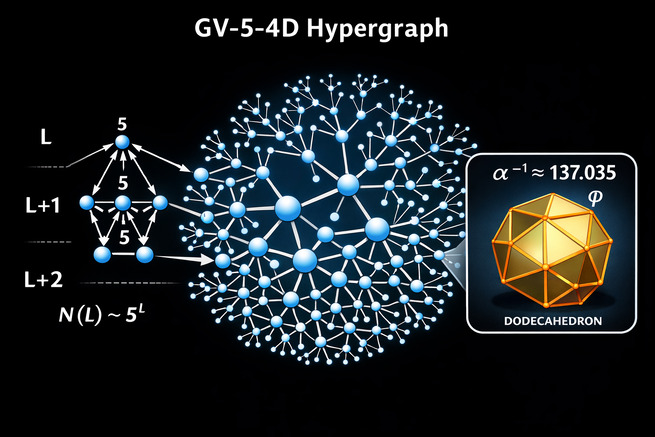 Работа представляет модель GV‑5‑4D. Это дискретная геометро-динамическая конструкция. Она объединяет топологию гиперграфа с ф...
